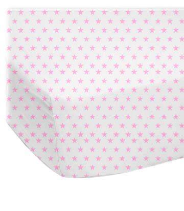 This luxurious plush 100% cotton "jersey knit" sheet is what your baby deserves to sleep on. Our sheets are made of the highest quality fabric that's measured at 150 gsm (grams per square meter). That means these are softer than your favorite t-shirt, and as soft as flannel. Sheets are made with deep pockets and are elasticized around the entire edge which prevents it from slipping off the mattress, thereby keeping your baby safe. These sheets are so durable that they will last all through your baby's growing years. We're called sheetworld because we produce the highest grade sheets on the market today. Features beautiful pink stars printed on a solid white background.